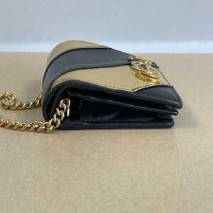 GUCCI Calfskin Diagonal Striped Zumi Chain Wallet - Black Beige - Preloved