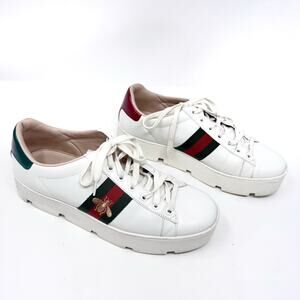 GUCCI Calfskin Web Bee Embroidered Womens Ace Platform Sneaker White EU 40.5