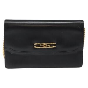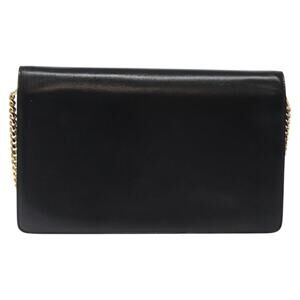 GUCCI Chain Shoulder Bag Leather Black Gold