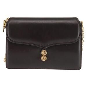 GUCCI Chain Shoulder Bag Leather Black Gold Auth BA6290