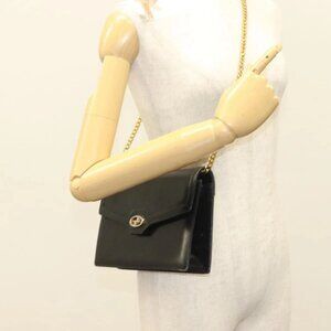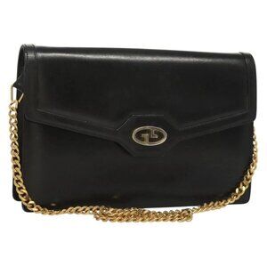 GUCCI Chain Shoulder Bag Leather Black Gold Auth ep9431