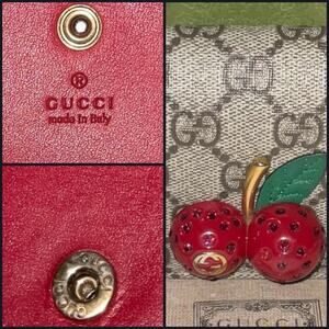 GUCCI folding wallet with a large cherry with crystals on the front.