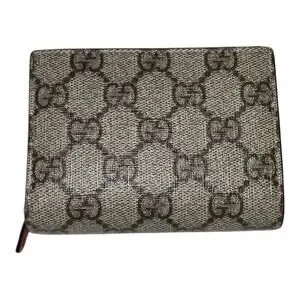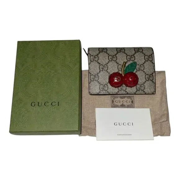 GUCCI Cherry GG Supreme Beige Gray Bi-fold Wallet W/Box and Card