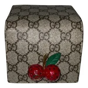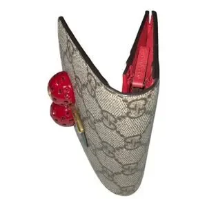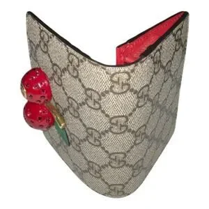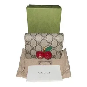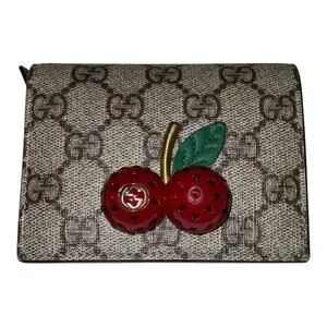 GUCCI folding wallet with a large cherry with crystals on the front.