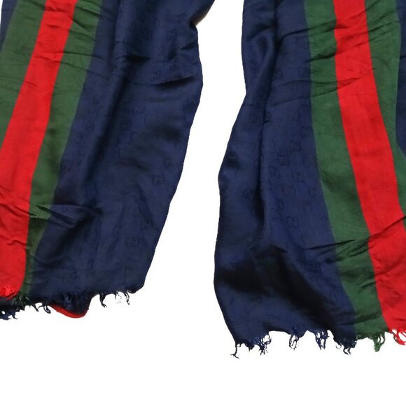 GUCCI Classic Vintage Blue Red Green Reversible Silk Shawl Wrap Scarf