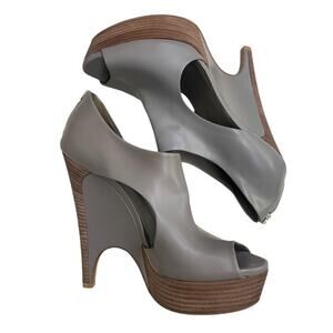 Gray Leather, ZIP Closure in Back, Wooden Platform
