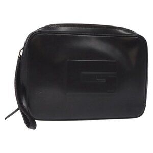GUCCI Clutch Bag Leather Black Silver 018 0040 Auth ep9261