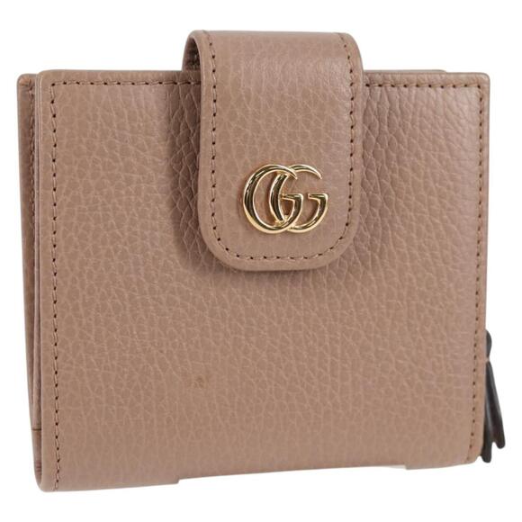 GUCCI Compact Bifold Wallet Leather Gold Pink Beige 523193 1147 Auth 135025AM