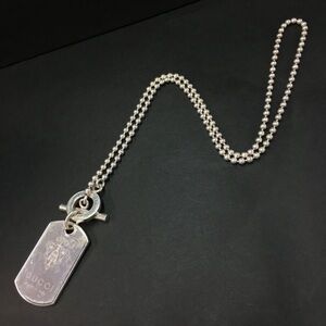 GUCCI Crest Plate Silver 925 Ball Chain Pendant Necklace