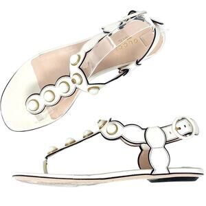 GUCCI DOUBLE GG PEARL LEATHER SANDALS SZ 36.5