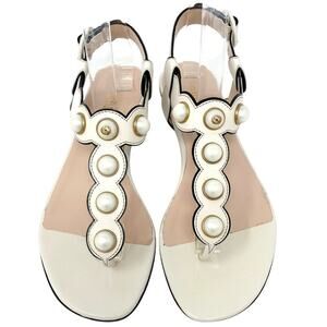 Style: Flat thong sandal with pearl accents