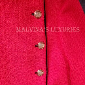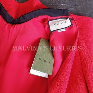 GUCCI DRESS VELVET TRIM RETRO RED TWEED WOOL BLEND sz IT 40 US 4