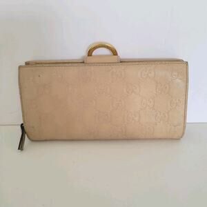 GUCCI D-Ring Abbey Clutch Wallet Large Monogram Bifold Beige Tan Vintage Designe