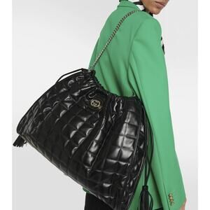 GUCCI DECO LARGE CAMELIA BLACK QUILTED LEATHER HOBO TOTE CHAIN SHOULDER BAG