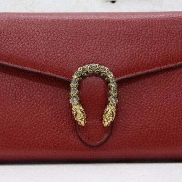 GUCCI Dionysus Mini Red Clutch 401231 496334 w/ Silver Chain Strap