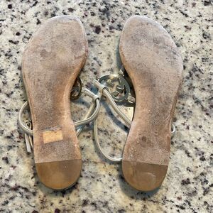 GUCCI Double G Heart Monogram Thong T-Strap Flat Sandals Size 39 US 8.5 Neutral