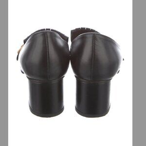 GUCCI Double G Logo Black Leather Square Toe Pumps Size 38