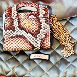 GUCCI Double G Python Marmont Top Handle Card Case wallet Crossbody evening bag
