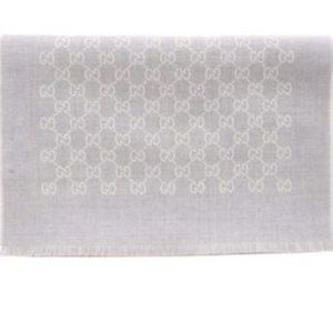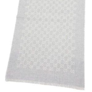 Gucci Double Jacquard GG wool Scarf in Gray. Crafted from pure wool, this scarf from Gucci features fringed edges and all over GG pattern on both the front and back in reverse colors