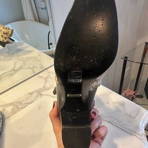 Authentic pair of GUCCI Elaphe Snakeskin Elizabeth Boots size 36.5 in Roccia and Nero. Heel 2.75". These boots are crafted of black leather and snakeskin. They feature a silver side Dionysus buckle and a hidden side zipper. These are breathtaking statement boots that are guaranteed attention getters, from Gucci!