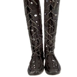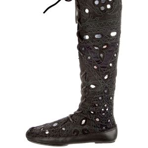 GUCCI Embroidered Accent Lace-Up Boots Size: 7