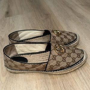 yes to being authentic!! Truly I’m only selling them because I’m transitioning my closet to a more minimalist vibe (black, white, nudes without labels). I attempted to measure, not sure if I did it correctly but it read 34”. The shoe itself is a 39 and they’re true to size!