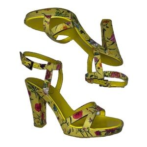 GUCCI Flora Sandals Yellow Floral Canvas EU 38.5 Platform Multicolor Heels Box