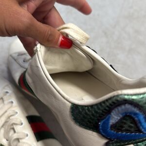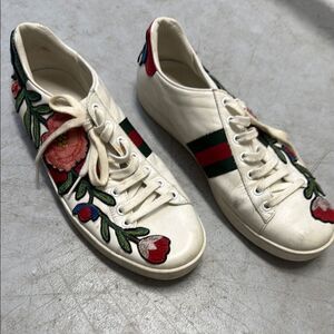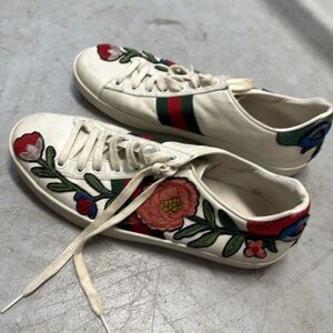 GUCCI Floral Embroidered White Sneakers - Great Conditon Leather Shoe - Size 40