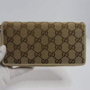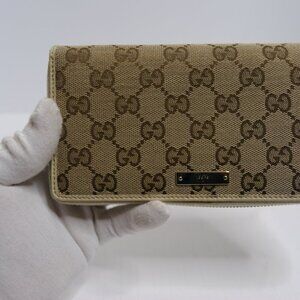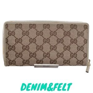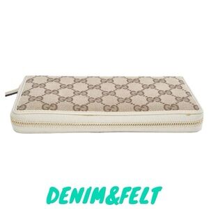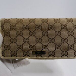 🤎GUCCI GG Beige/Off White Monogram Metal Bar Zip Around Long Wallet | PRELOVED!
