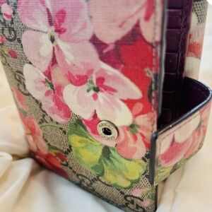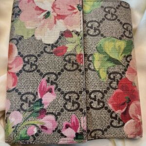 GUCCI GG Blooms Wallet Floral Beige Pink Leather Snap Bifold Purse Snap AUTH EXC