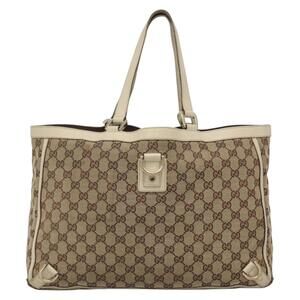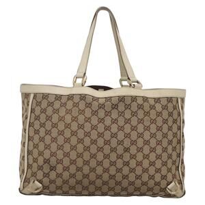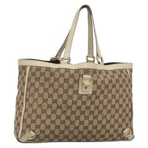 GUCCI GG Canvas Abbey Tote Bag Beige Gold