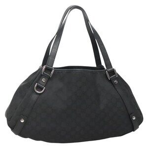 GUCCI GG Canvas Abbey Tote Bag Nylon Outlet Brown Silver