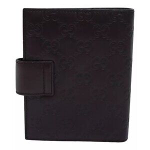 GUCCI GG Canvas Guccissima Day Planner Cover Brown Silver 115240 Auth am6719