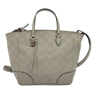 GUCCI GG Canvas Guccissima Hand Bag Leather Gray Gold 353121 Auth EC864