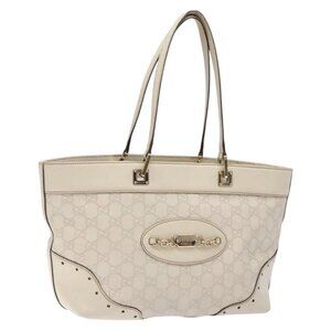 GUCCI GG Canvas Guccissima Horsebit Tote Bag White Gold 145993 Auth 132199