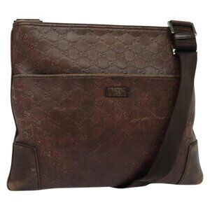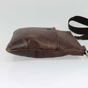 GUCCI GG Canvas Guccissima Shoulder Bag Leather Brown Silver 162914 Auth BA4492