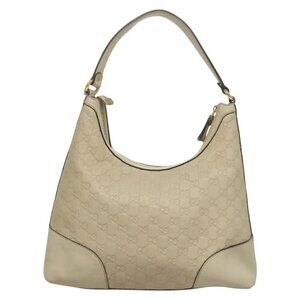 GUCCI GG Canvas Guccissima Shoulder Bag Leather White Gold 257070 Auth 131926
