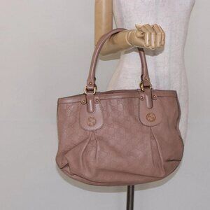 GUCCI GG Canvas Guccissima Tote Bag Leather Beige Gold 269953 Auth PP889