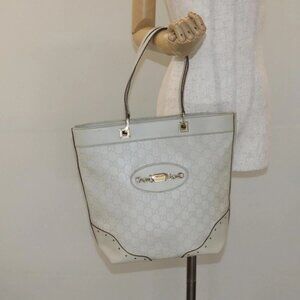 GUCCI GG Canvas Guccissima Tote Bag Leather White Gold 145984 Auth 129226