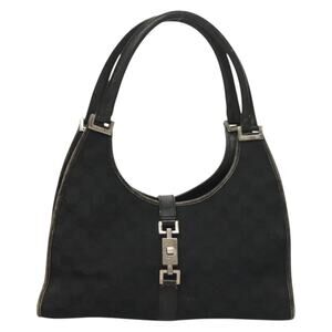 GUCCI GG Canvas Jackie Hand Bag Black Silver 002 1066 002 1066