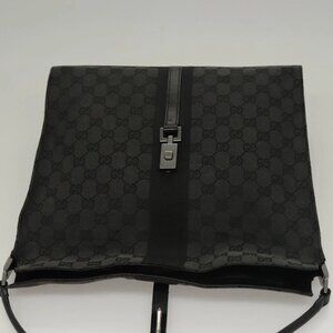 GUCCI GG Canvas Jackie Shoulder Bag Black Silver 001 3355 1781 Auth 133986