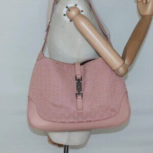 GUCCI GG Canvas Jackie Shoulder Bag Pink Silver