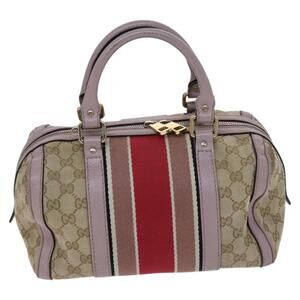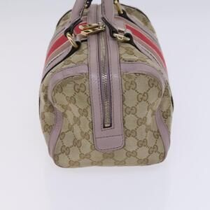 GUCCI GG Canvas Sherry Line Boston Bag Beige Pink Red