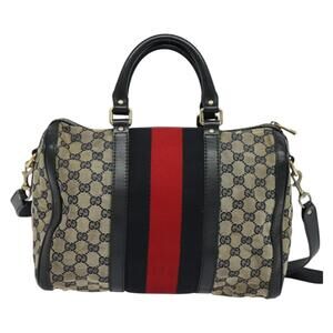 GUCCI GG Canvas Sherry Line Boston Bag Navy Gold