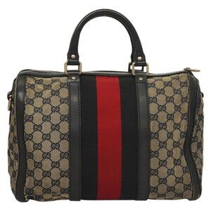GUCCI GG Canvas Sherry Line Boston Bag Navy Red 247205 Auth gh440