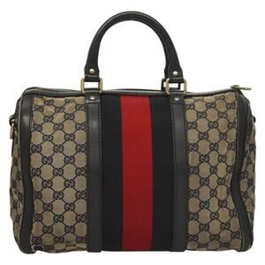 GUCCI GG Canvas Sherry Line Boston Bag Navy Red