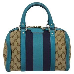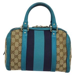 GUCCI GG Canvas Sherry Line Hand Bag 2way Beige Gold