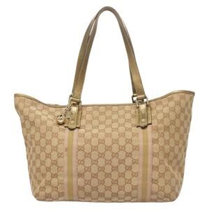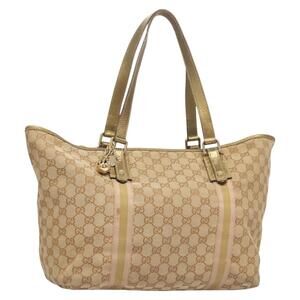 GUCCI GG Canvas Sherry Line Hand Bag Beige Gold
