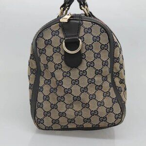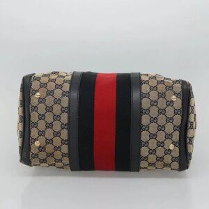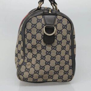 GUCCI GG Canvas Sherry Line Hand Bag PVC Navy Gold