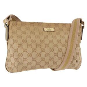 GUCCI GG Canvas Sherry Line Shoulder Bag Beige Gold 189749 001998 Auth yk19719
